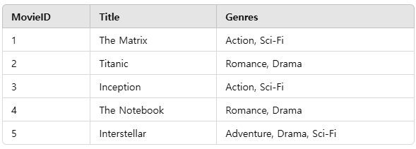 5가지 영화의 장르에 대한 특징이 정의되어있다고 가정하겠습니다