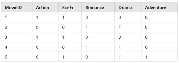 아래 그림처럼 영화 장르의 정보를 Vectorization하여 Rating Matrix를 만듭니다