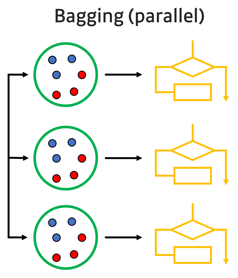 각각의 모델이 같은 알고리즘이지만, 데이터 샘플링을 다르게 해서 학습하는 방법