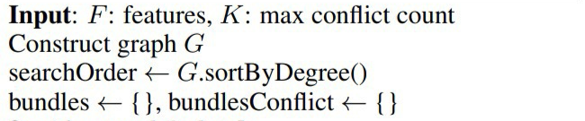 $ConflictCnt(bundles[j], F[i])$ : 이미 Bundle에 포함된 Feature들 추가할 Feature와의 Conflict 계산