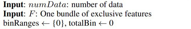 - 현재 Feature Set에서 어떤 Feature를 하나의 Bundle로 묶을 것인지 결정하는 과정(Greedy Bundling)