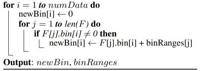 Bundle에 포함된 각 Feature($f\;in\;F$)의 bin 값을 더하여 $binRanges$에 저장합니다