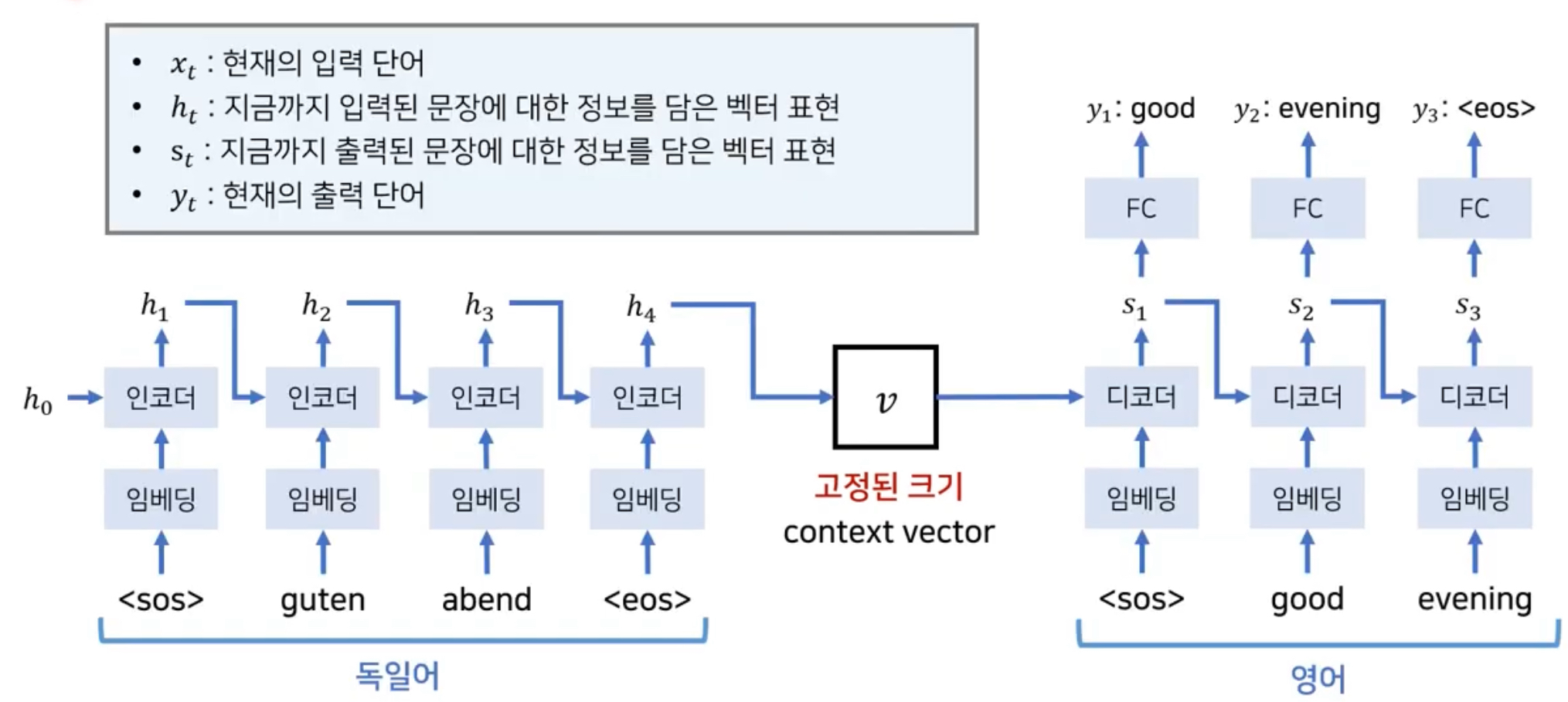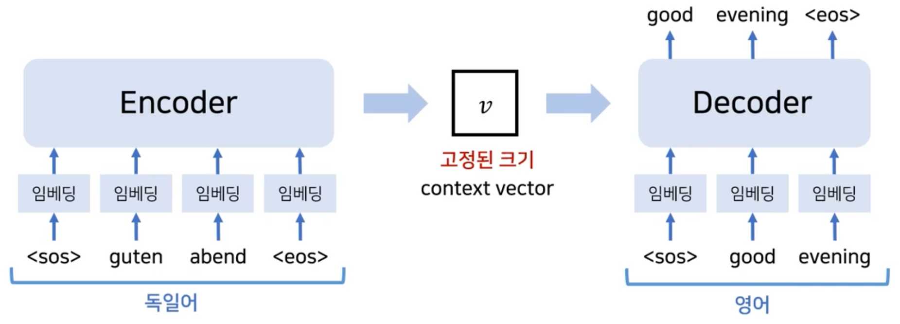 전통적인 RNN 기반의 기계 번역은 Input과 Output의 크기가 같다고 가정한다.