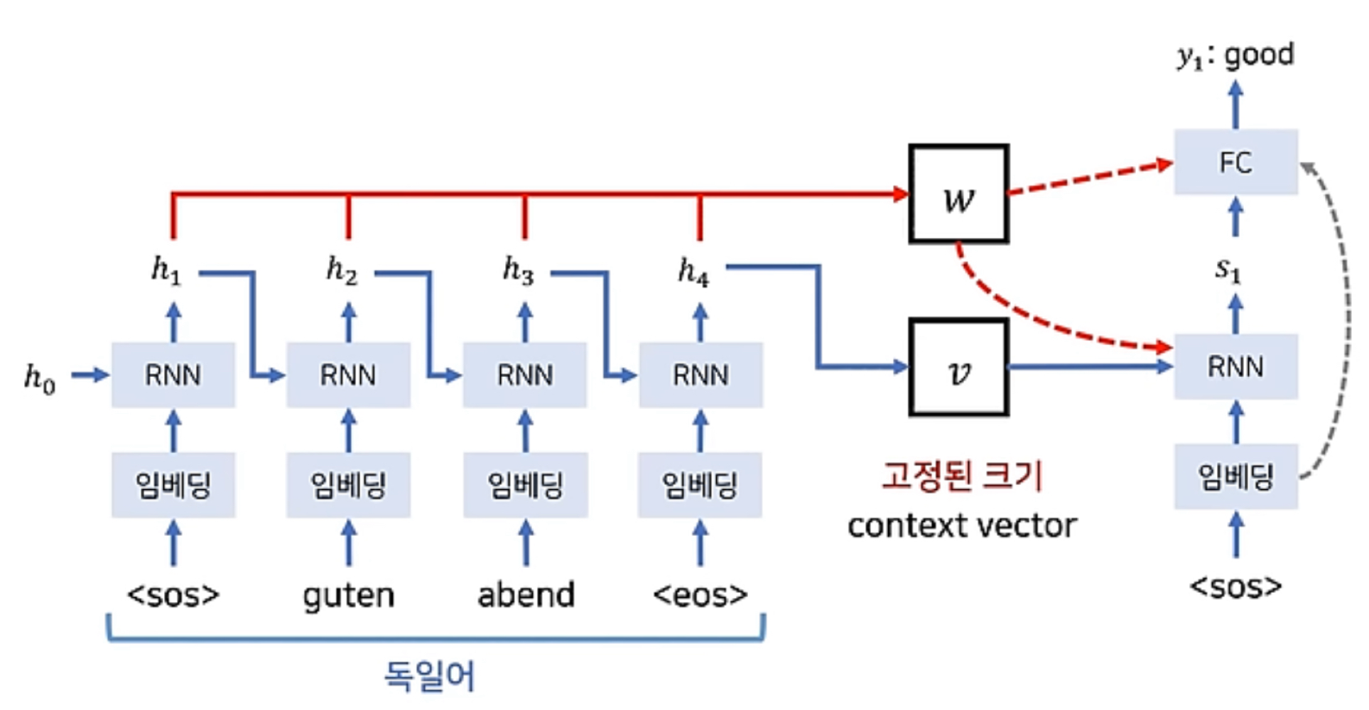 이 $v_t$를 $\hat{y}$ 예측 연산의 입력으로 사용하므로서 Encoder로부터 얻은 정보를 활용하여 $\hat{y}$를 좀 더 잘 예측할 수 있게 된다.