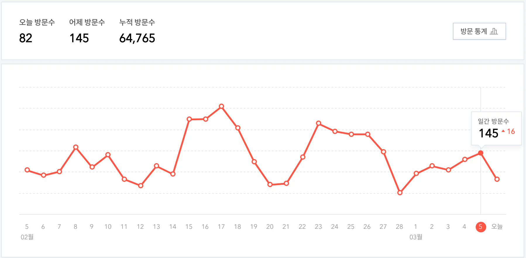요즘 바빠서 관리를 못 했다가 방문 기록을 봤더니 벌써 누적 방문 수가 6만을 넘었다.