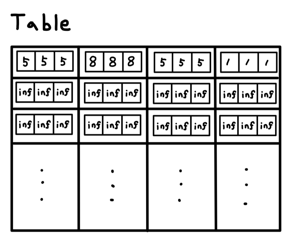 위 그림은 DP Table의 초기화 한 상태의 그림입니다.