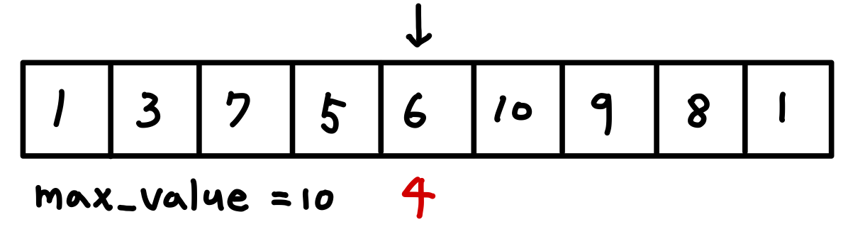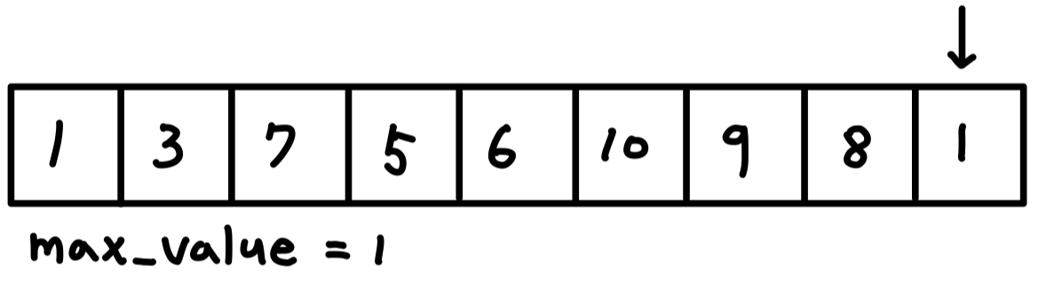 Input = [1, 3, 7, 5, 6, 10, 9, 8, 1] 일 때의 예시입니다.