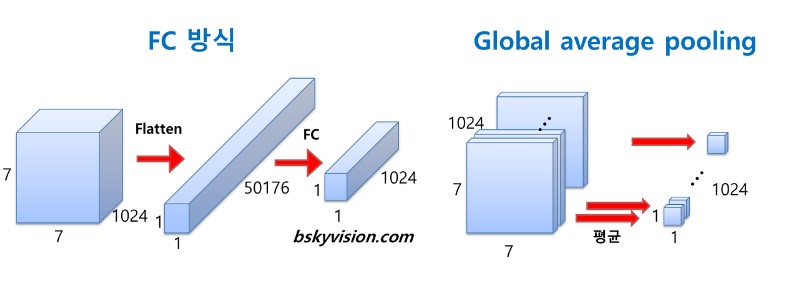 GAP는 채널별 Featue Map 평균을 구해 직접 Softmax Layer의 입력으로 사용하여 공간 정보가 손실되지 않을 뿐만 아니라 FC Layer에 의해 파라미터를 최적화하는 과정이 없기 때문에 효율적입니다.