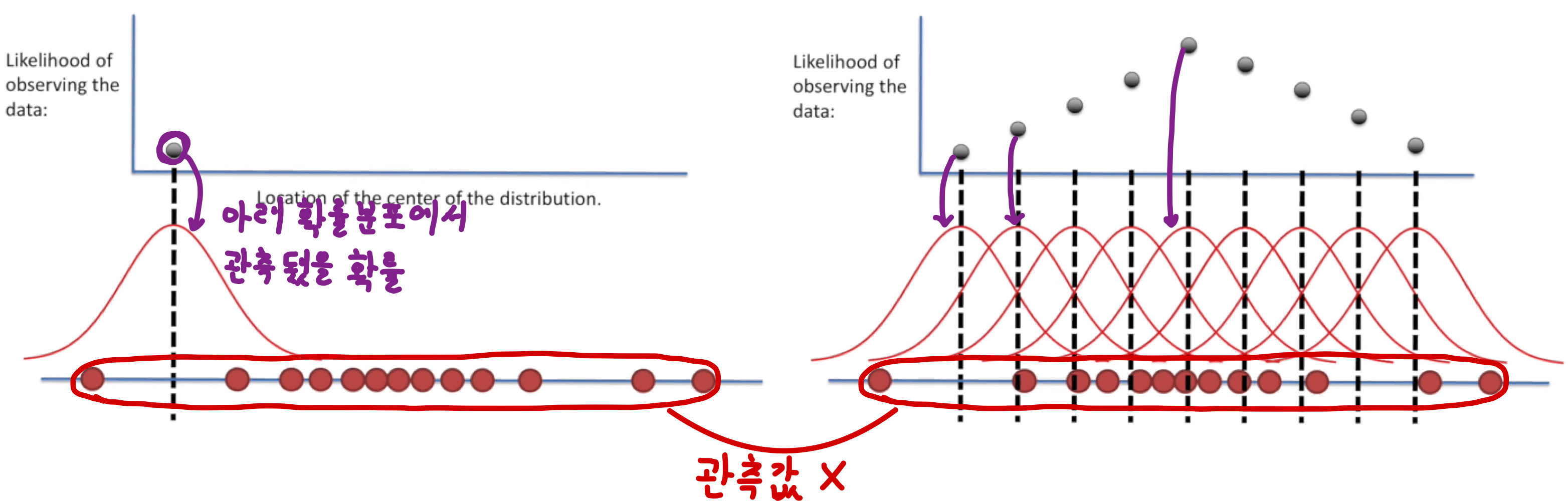 - 즉, 현재의 데이터 분포가 가장 나올 확률이 가장 높은 파라미터를 추정한다